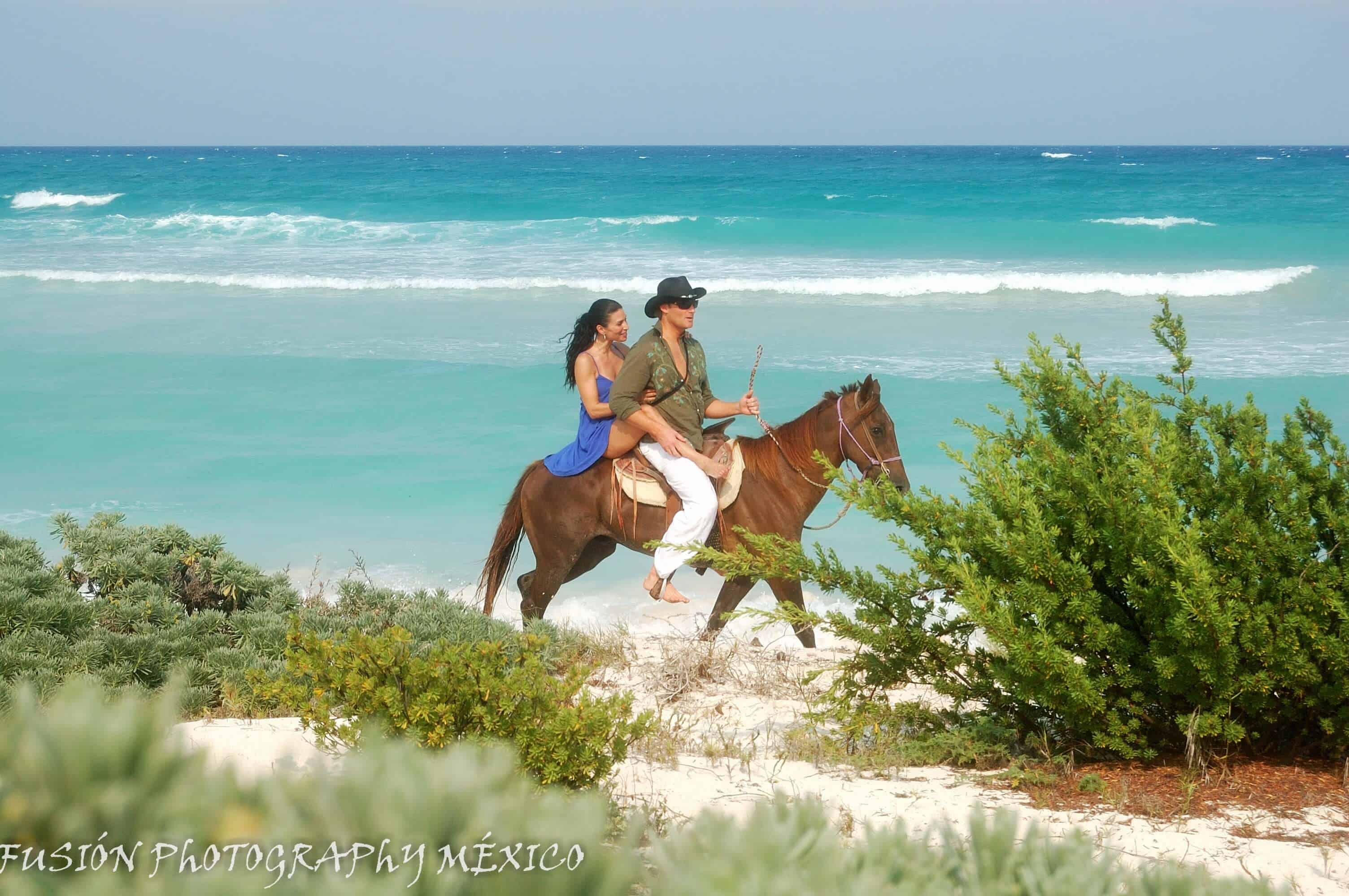 We found a private beach in Mexico that would allow horses and it turned out perfect. When Liz was in the shower, Mike left a note for her and headed to the beach. Liz found the note and went outside to catch her ride to the beach. She had no idea what was going on. When she got to the beach she was put on an ATV and brought to the shore where she was told to look to the north. Before she knew it, Mike came galloping down the beach on a horse and whisked her away into the sunset. Check out the beautiful proposal, captured on camera by Fusion Photography and coordinated by The Heart Bandit