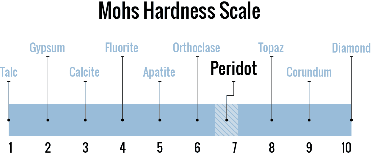 Less durable than diamonds and rubies, peridot still maintains a 6.5 to 7 on the Mohs scale, making them durable enough for frequent or everyday wear.