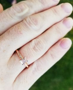 I would like to let you know that we purchased that beautiful pink-brown diamond in a solitaire setting a couple weeks ago, and it arrived yesterday. It is beautiful, and I couldn’t be happier!