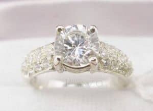 A J color stone is slightly stretching but I think it will be fine for a yellow gold pave. The thing is that the small stones aside are usually high colors. That’s why I wouldn’t go down to a K color stone. The difference will be too significant. K color stones are great for a yellow gold solitaire (without any other diamonds in the setting).