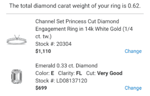 Wow, that’s great. I would like to stay at the price of 1800. In your opinion should I select a better setting or a better diamond. I just changed the ring to the diamond you sent and changed the setting to a better one. What is your opinion?