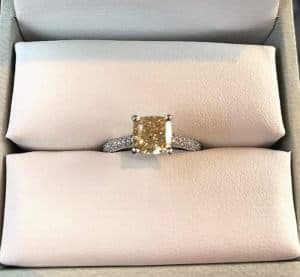 Color: – She always wanted a “champagne diamond”. We realized that they are commonly referred to as “yellow” diamonds.