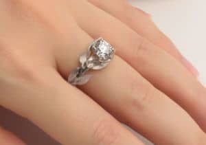 It would be set in in platinum four prong type of leaves setting. I have a face up picture, but I cannot attach it here.