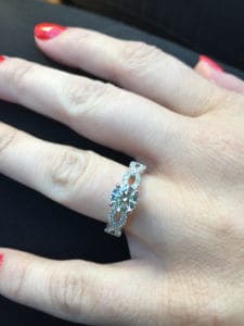 Everything went great and the ring looks fantastic. Thanks for helping me select the diamond. I attached a picture of the end product on my fiancee’s finger.
