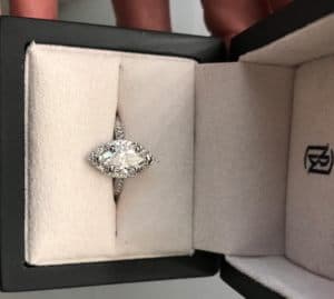 I’m going with this Halo setting in platinum… H color VS2 pave set.