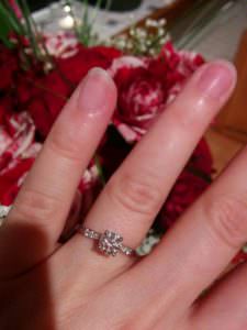 The ring is very beautiful and the diamond indeed perfect (to my non-trained eye). Although “I” the diamond has no yellowish touch to my eye. The ring was shipped well-packaged and had all required documents nicely included. I am very satisfied with my choice of setting and the stone size of 0.7 – more would have been too much for her small hands. Again, thanks for your help choosing the right stone!