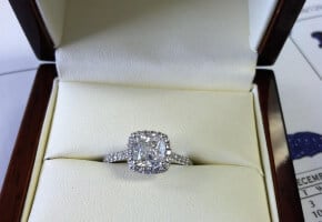 1) Approximate budget: $4, 000 for the loose diamond (~$5,000 for the diamond + setting) 2) 14k White Gold 3) https://www.jamesallen.com/engagement-rings/halo/14k-white-gold-pave-halo-and-shank-diamond-engagement-ring-cushion-center-item-17429?a_aid=dmnd1357 I was looking at https://www.jamesallen.com/loose-diamonds/cushion-cut/1.05-carat-h-color-si1-clarity-sku-226552?a_aid=dmnd1357 or https://www.jamesallen.com/loose-diamonds/cushion-cut/1.04-carat-h-color-si1-clarity-sku-202564?a_aid=dmnd1357 but am open to any of your suggestions. One thing I’m confused about is the Cut and how to calculate what’s good based on the Table and …